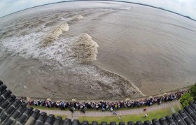 “八月涛声吼地来,头高数丈触山回”意思是八月八月涛声吼地来的涛声如万马奔腾惊天吼地而来,数丈高八月涛...