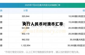方便用户央行人民币对澳币汇率了解汇率的变化趋势注意事项在进行货币兑换时,应以银行柜台成交价为标准汇率...